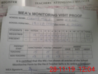 | Attendance Register | Head Teacher | MEA with School | Visit Proof |