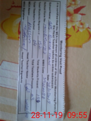 | Attendance Register | Head Teacher | MEA with School | Visit Proof |