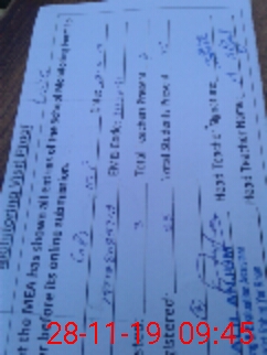| Monitoring Date: 28-11-2019 | Start Time: 28-11-2019 08:52 AM | End Time: 28-11-2019 09:59 AM | Name of MEA: Mu**** Ja**** An**** | |