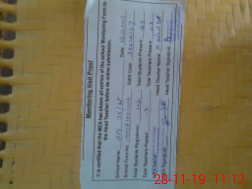 | Attendance Register | Head Teacher | MEA with School | Visit Proof |