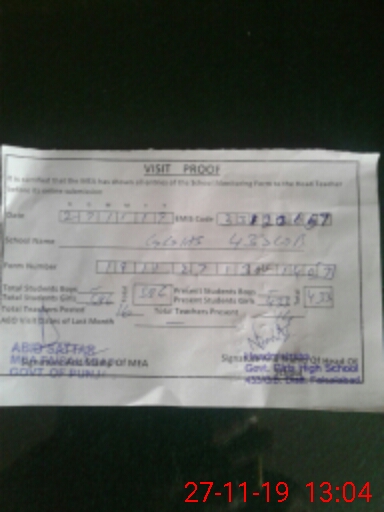 | EMIS Code: 33120657 | Name of School: GGHS CHAK 433 GB JHOKE DITTA | |||