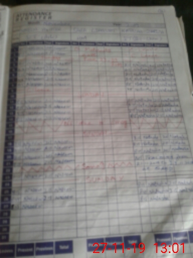 | CNIC | Full Name | Designation | R/C | Absence During Last Calender Month |