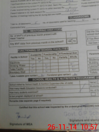 | Attendance Register | Head Teacher | MEA with School | Visit Proof |