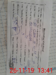 | Monitoring Date: 26-11-2019 | Start Time: 26-11-2019 12:38 PM | End Time: 26-11-2019 01:42 PM | Name of MEA: M.**** HA**** BN**** | |