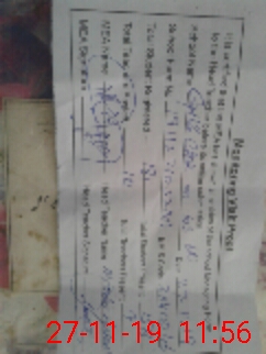 | Monitoring Date: 27-11-2019 | Start Time: 27-11-2019 10:52 AM | End Time: 27-11-2019 11:57 AM | Name of MEA: M.**** HA**** BN**** | |
