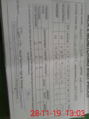 | Certified that this School was Inspected by the Undersigned MEA/DMO Today and the Information Stated Above is as Per Record. | |||||