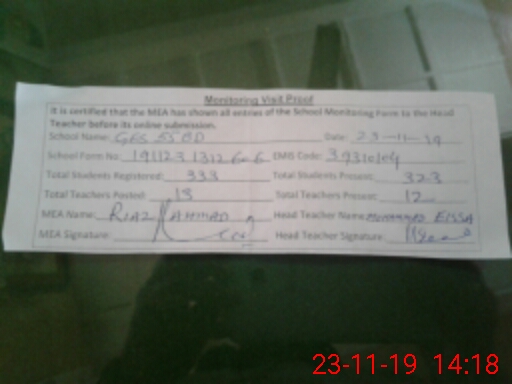 | Certified that this School was Inspected by the Undersigned MEA/DMO Today and the Information Stated Above is as Per Record. | |||||