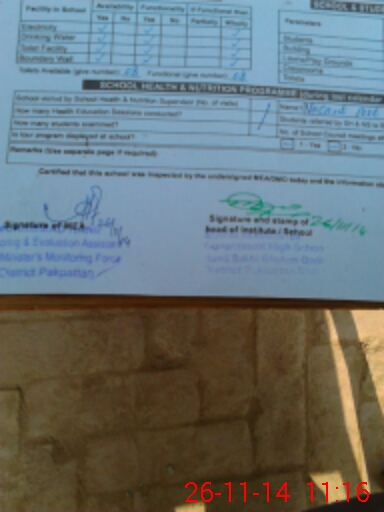 | Certified that this School was Inspected by the Undersigned MEA/DMO Today and the Information Stated Above is as Per Record. | |||||