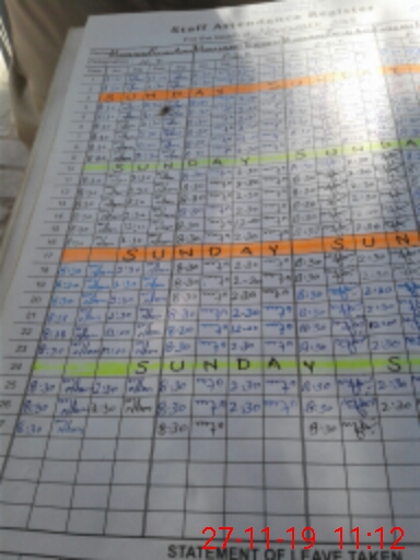 | CNIC | Full Name | Designation | R/C | Absence During Last Calender Month |