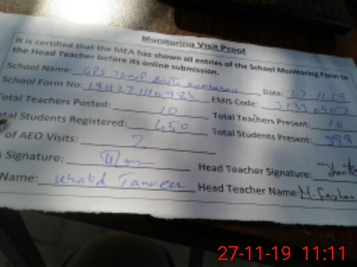 | EMIS Code: 31330407 | Name of School: GPS CHAK 72/NP BASTI KUMHARAN | |||