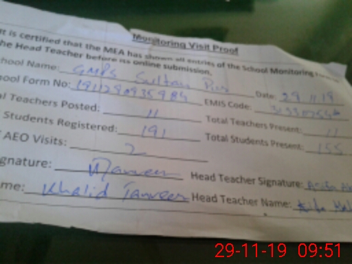 | EMIS Code: 31330754 | Name of School: GMPS SULTAN PUR | |||