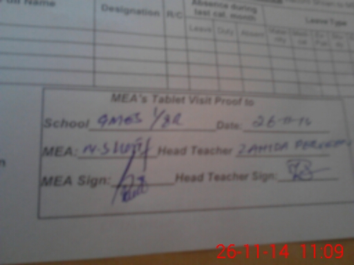 | Attendance Register | Head Teacher | MEA with School | Visit Proof |