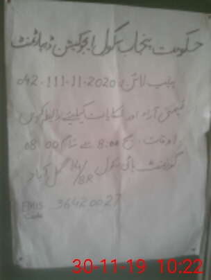 | Name: Mu**** SH**** urRe**** Designation: (School Headmaster's/Headmistress's) S.H.M Phone/Cell Number: 03**** |