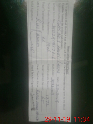 | Monitoring Date: 29-11-2019 | Start Time: 29-11-2019 09:27 AM | End Time: 29-11-2019 11:34 AM | Name of MEA: RI**** AH**** ZA**** (R**** | |