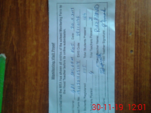 | Monitoring Date: 30-11-2019 | Start Time: 30-11-2019 11:05 AM | End Time: 30-11-2019 12:01 PM | Name of MEA: Gh**** Mu**** Mu**** (R**** | |
