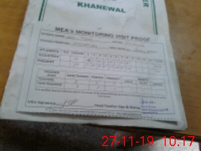 | Attendance Register | Head Teacher | MEA with School | Visit Proof |