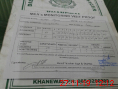 | Attendance Register | Head Teacher | MEA with School | Visit Proof |
