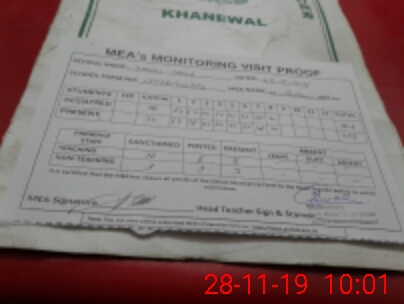 | Attendance Register | Head Teacher | MEA with School | Visit Proof |