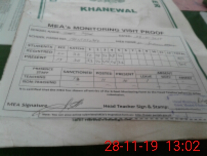 | Attendance Register | Head Teacher | MEA with School | Visit Proof |