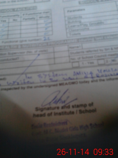 | Certified that this School was Inspected by the Undersigned MEA/DMO Today and the Information Stated Above is as Per Record. | |||||
