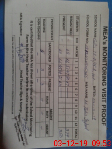 | Attendance Register | Head Teacher | MEA with School | Visit Proof |
