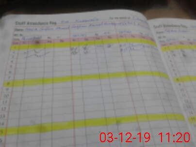 | CNIC | Full Name | Designation | R/C | Absence During Last Calender Month |