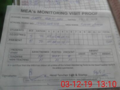 | Attendance Register | Head Teacher | MEA with School | Visit Proof |