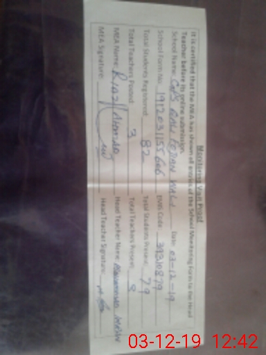 | Certified that this School was Inspected by the Undersigned MEA/DMO Today and the Information Stated Above is as Per Record. | |||||