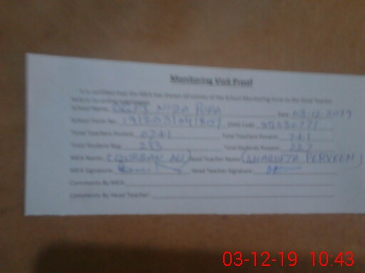 | Attendance Register | Head Teacher | MEA with School | Visit Proof |