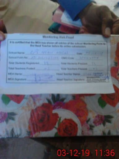 | Attendance Register | Head Teacher | MEA with School | Visit Proof |