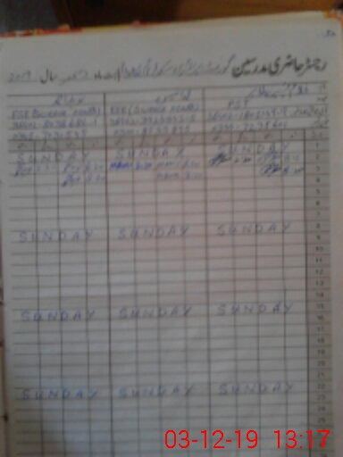 | CNIC | Full Name | Designation | R/C | Absence During Last Calender Month |