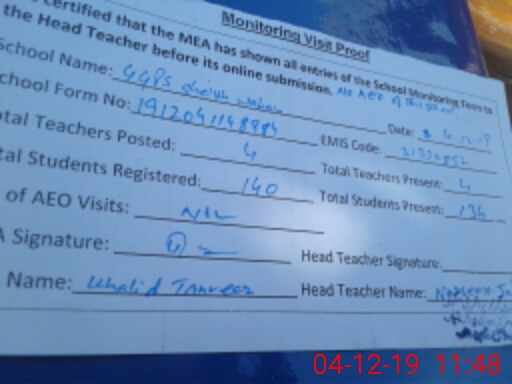| EMIS Code: 31330852 | Name of School: GGPS SHEIKH WAHIN NO. 1 | |||