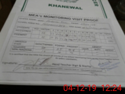 | Certified that this School was Inspected by the Undersigned MEA/DMO Today and the Information Stated Above is as Per Record. | |||||