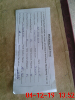 | Attendance Register | Head Teacher | MEA with School | Visit Proof |