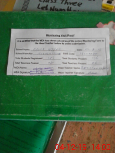 | Attendance Register | Head Teacher | MEA with School | Visit Proof |