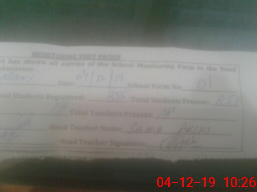 | Attendance Register | Head Teacher | MEA with School | Visit Proof |