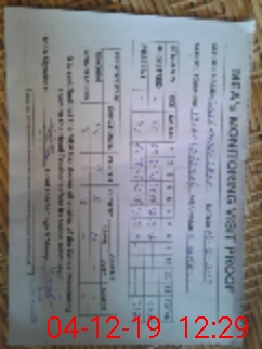 | Monitoring Date: 04-12-2019 | Start Time: 04-12-2019 11:22 AM | End Time: 04-12-2019 12:34 PM | Name of MEA: GH**** AB**** | |
