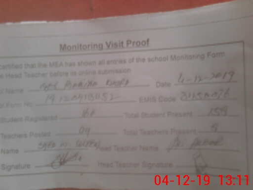 | Certified that this School was Inspected by the Undersigned MEA/DMO Today and the Information Stated Above is as Per Record. | |||||