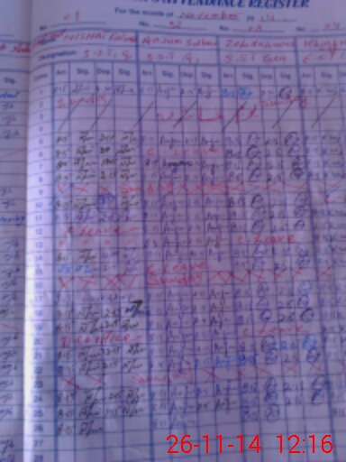 | CNIC | Full Name | Designation | R/C | Absence During Last Calender Month |