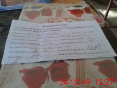 | Attendance Register | Head Teacher | MEA with School | Visit Proof |