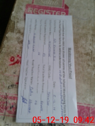| Monitoring Date: 05-12-2019 | Start Time: 05-12-2019 09:06 AM | End Time: 05-12-2019 09:46 AM | Name of MEA: Gh**** Ak**** Kh**** | |