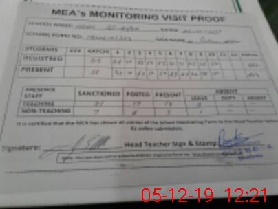 | Attendance Register | Head Teacher | MEA with School | Visit Proof |