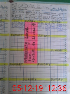 | Leave | Duty | Absent | Maternity | Medical | Ex- Pak |