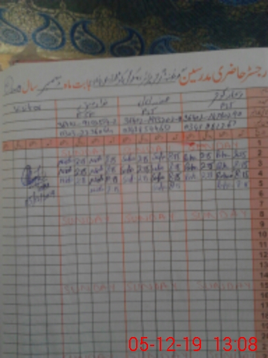 | CNIC | Full Name | Designation | R/C | Absence During Last Calender Month |