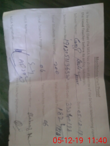 | Attendance Register | Head Teacher | MEA with School | Visit Proof |