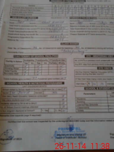 | School Visited by School Health & Nutrition Supervisor (No. of Visits) | Name1: | Mohammad Javed | Name2: | Nil | |