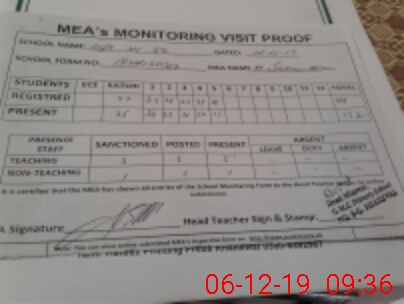 | Attendance Register | Head Teacher | MEA with School | Visit Proof |