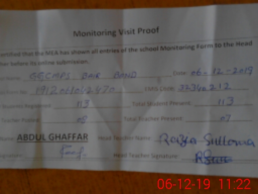 | Certified that this School was Inspected by the Undersigned MEA/DMO Today and the Information Stated Above is as Per Record. | |||||