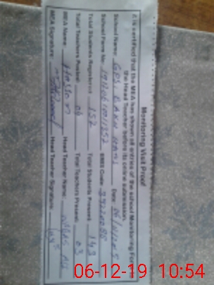 | Attendance Register | Head Teacher | MEA with School | Visit Proof |
