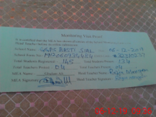| EMIS Code: 32310237 | Name of School: GGPS BASTI SIAL | |||
